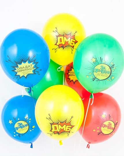 • Шары-фигуры: Забавные шары в виде супергероев, солдат или других персонажей, олицетворяющих силу и отвагу.