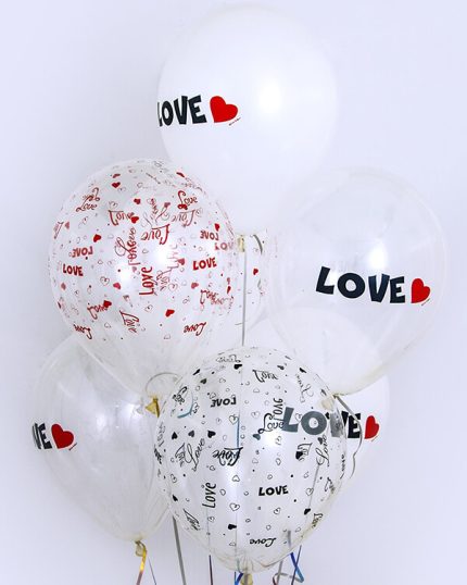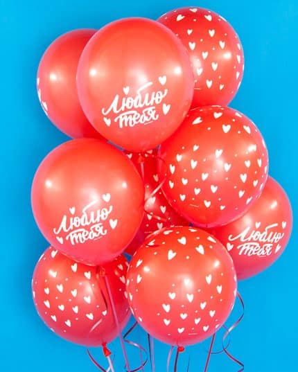 • Шары с надписями «Я тебя люблю!», «С Днем Святого Валентина!», «Be Mine», «Love»: Выразите свои чувства словами! Наши шары с романтическими надписями помогут вам признаться в любви или просто сказать «Я тебя люблю» особенным образом.